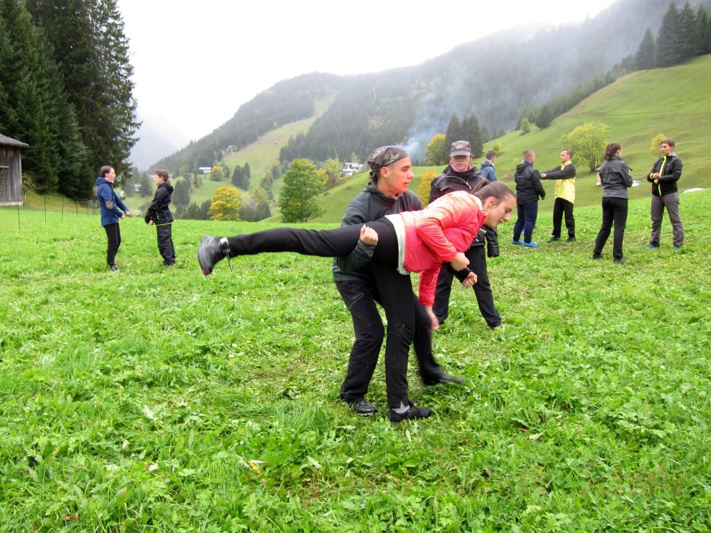 Doch zwei Zwerge haben schon vor der Abfahrt gezeigt wie dappich man sein kann und sperrten sich selber auf dem Parkplatz ein und kamen so fast nicht mehr mit. Doch zum Glück hatte der Sensei erbarmen und öffnete nochmal das Tor. Natürlich fanden das alle witzig! Sie bewiesen auch im Laufe der Woche ein weiteres Mal wie dappich man sein kann und verschliefen den Anfang des Morgentrainings. Aber es waren nur 23 Minuten und somit zum Glück „nur“ 230 Kniebeugen, was aufgrund der großen Erfahrung kein Problem darstellte. Dies wiederholte sich zum Glück am nächsten Tag nicht, denn sonst hätte es geheißen doppelt oder nichts…