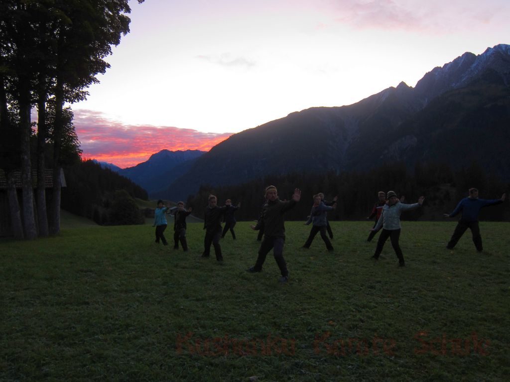 Es war auch sehr besonders dieses Mal, da wir sehr viel Training machten, uns mit Kihon, Qi Gong und dem Katabunkai beschäftigten. Dafür gab keine große Wanderung, bis auf einen kleinen Ausflug ins „Tal-der-Sinne.“ Zum Glück fing es auch erst am Ende der Wanderung an zu regnen als es etwas zu essen gab.